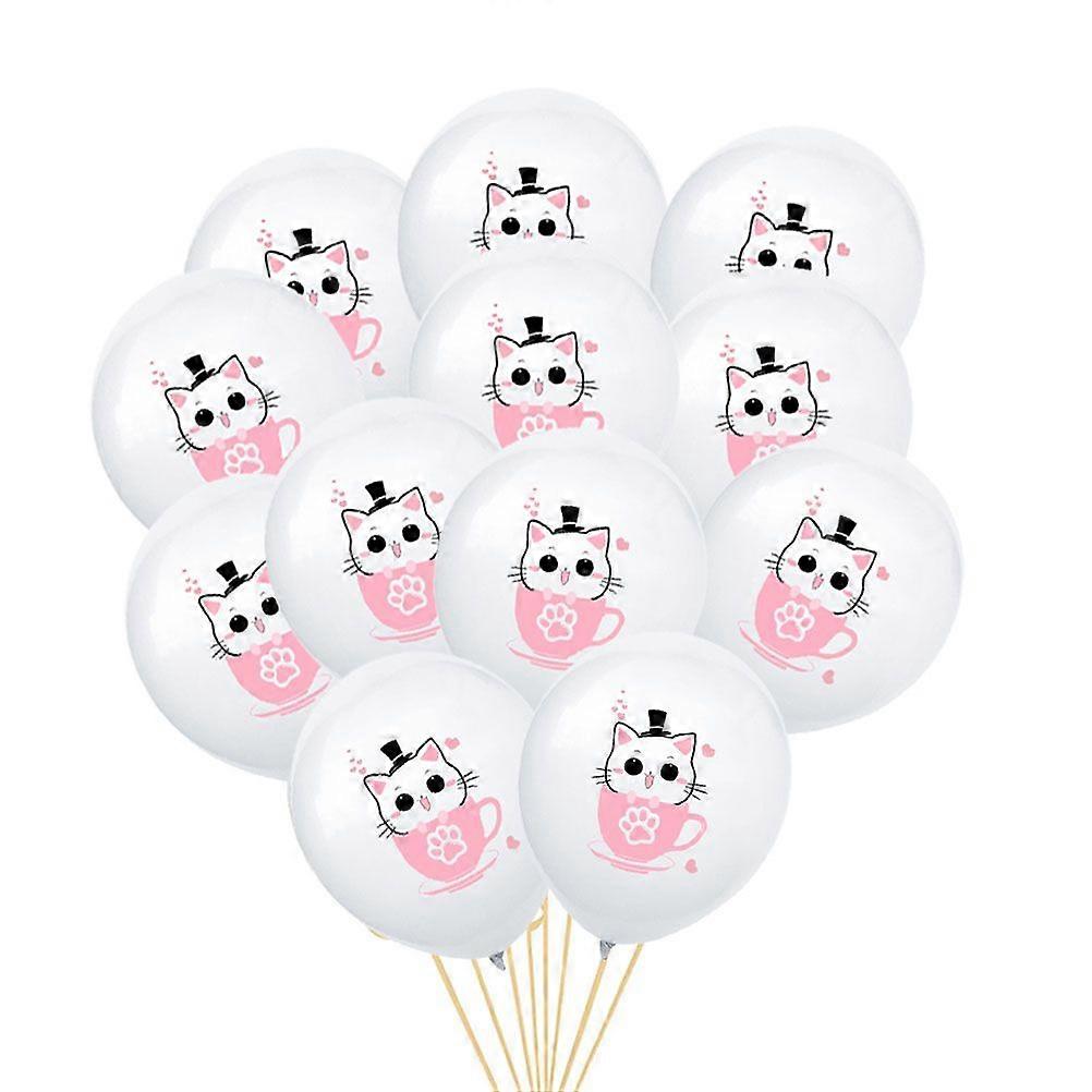 12 Pcs 12 Inch Party Balloons Teacup Cat Printed Balloons Inflatable Balloons (Teacup Cat)
