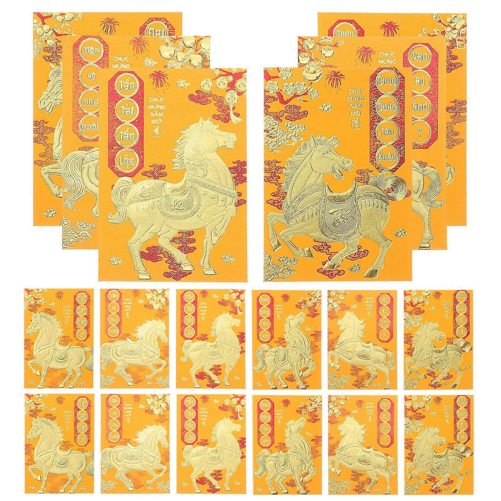 Description Celebrate the Year of the Horse with these beautifully designed Vietnamese red envelopes. suitable for presenting during Lunar New Year, these envelopes feature intricate designs and vibrant colors that symbolize good fortune and prosperity. Ideal for cash presents, they add a traditional touch to your festive celebrations, making them memorable and special. Features -Color:Yellow -Material:Paper -Size:11.50X8.50X0.10cm/4.52X3.34X0.04in -Unique design: celebrate the year of the horse with envelopes featuring intricate vietnamese cultural elements, adding a touch of elegance and tradition to your festivities -Material: crafted from paper with vibrant printing, these envelopes are durable and smooth to the touch, ensuring a presenting experience -Suitable for presenting: ideal for sharing blessings during lunar new year, these envelopes symbolize prosperity and good fortune for family and friends -Cultural keepsake: designed for collectors and cultural enthusiasts, these envelopes serve as memorable tokens of the 2026 lunar new year celebration -Versatile use: suitable for various occasions, from family gatherings to corporate events, these envelopes enhance the festive atmosphere effortlesslyPackage list: 120 x Red Envelopes