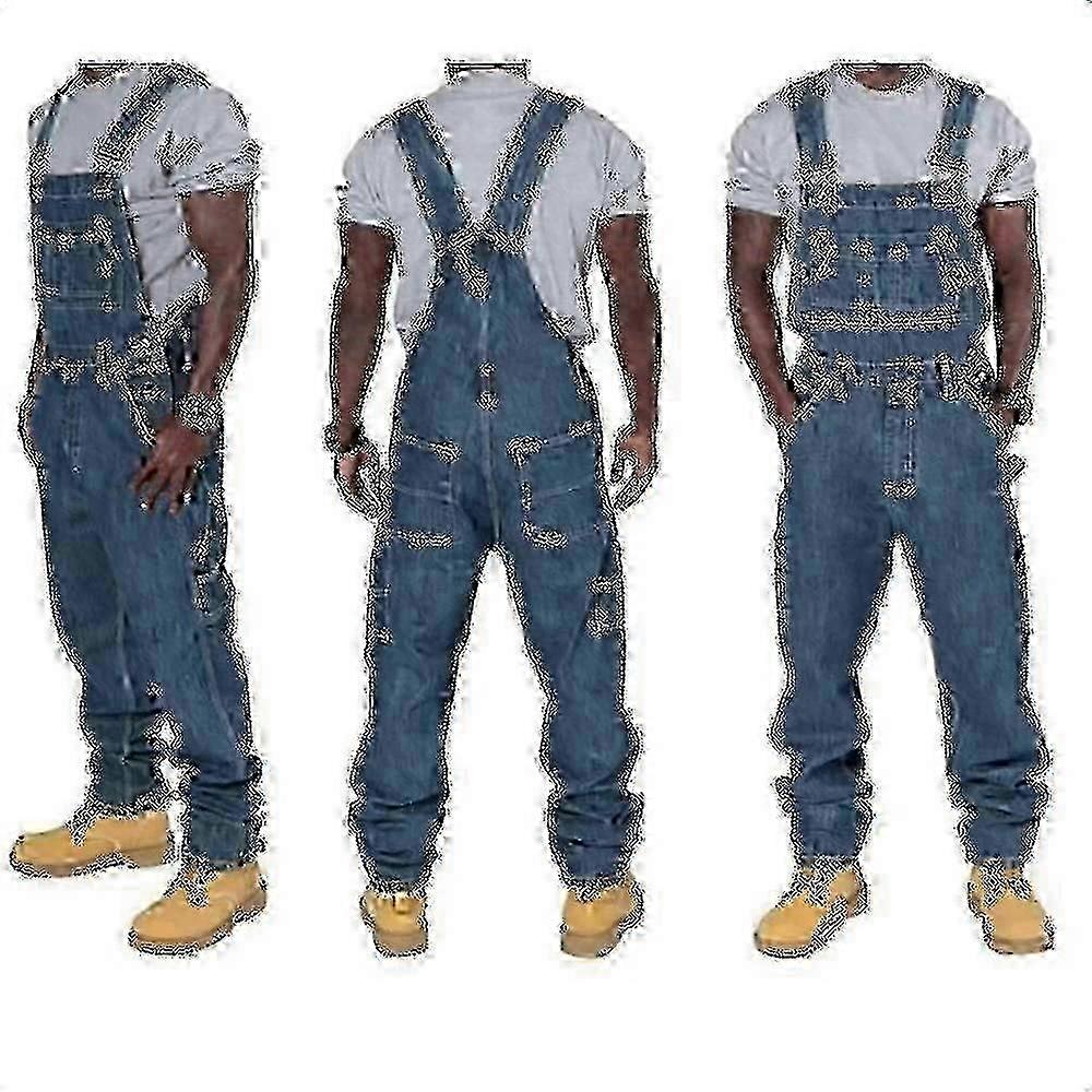 Men's Big & Tall Denim Bib Overalls with Adjustable Suspenders and Utility Pockets