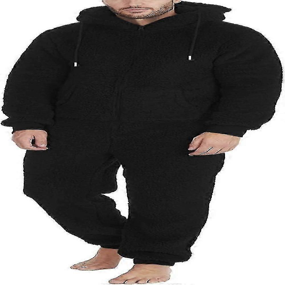 Men's Thermal Fleece Hooded Onesie Pajamas with Front Zipper