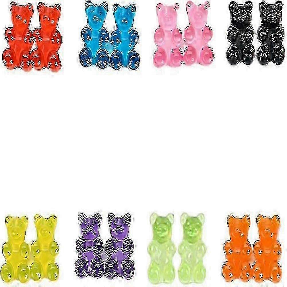of 8 Pairs Colorful Resin Gummy Bear Dangle Drop Earrings for Women and Girls