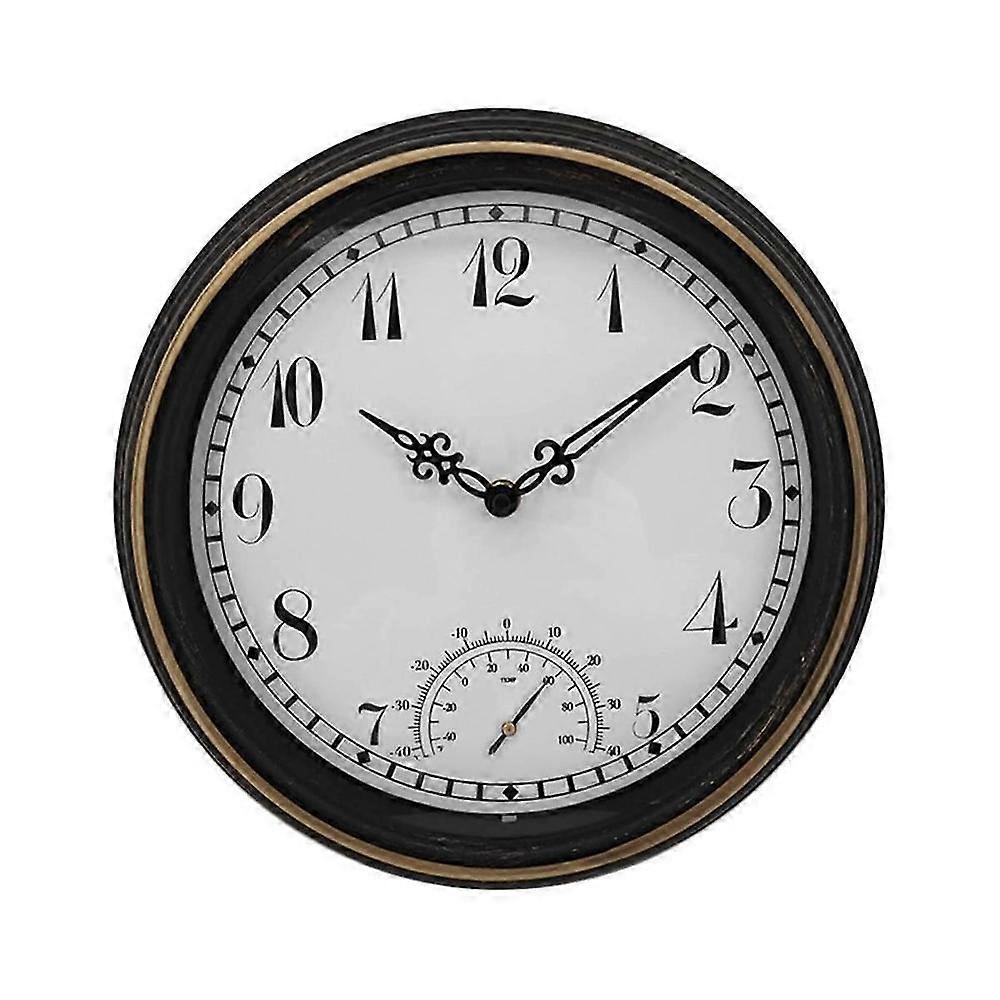 Vintage 12 Inch Outdoor Wall Clock with Thermometer, IP44 Waterproof Garden Decor
