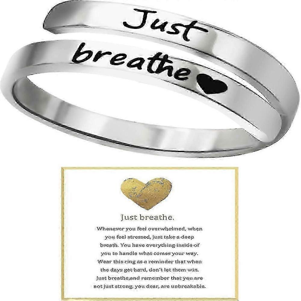 Adjustable Stainless Steel Spiral Wrap Heart Ring for Women with 'Just Breathe' Inscription