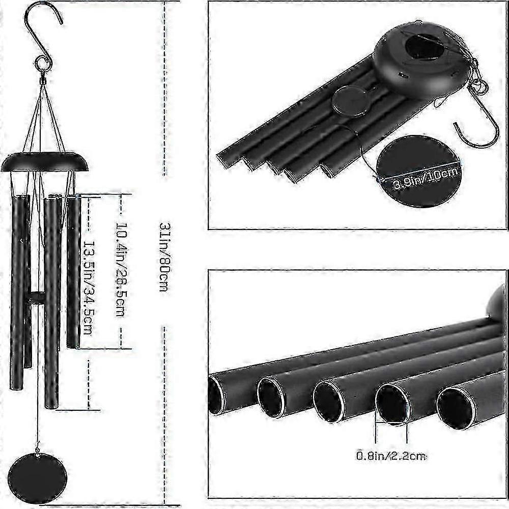 Classic Black Wind Chime with 5 Aluminum Tubes for Garden, Patio, or Indoor Decor