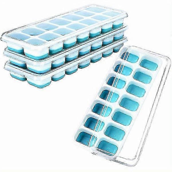 4pcs Silicone Ice Cube Trays with Lids, Easy Release, 14-Cube, LFGB Certified, BPA-Free, Spill-Resistant, for Cocktail, Blue