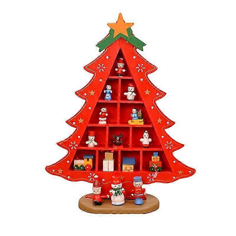 Christmas decorations, wooden Christmas tree, creative scene arrangement, 3D red Christmas desktop ornament, Red, M