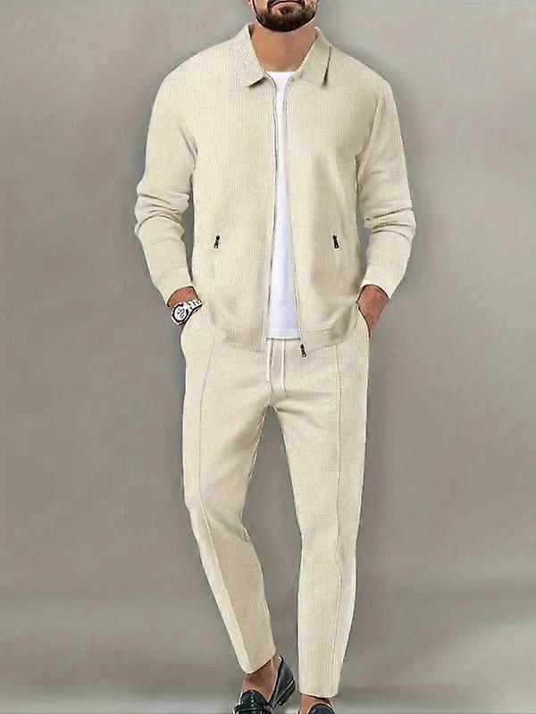 Sporty Two-Piece Set Men's Plain Zip Up Jacket & Drawstring Waist Pants Tracksuit Set, Men's Sportswear for Gym Workout Running
