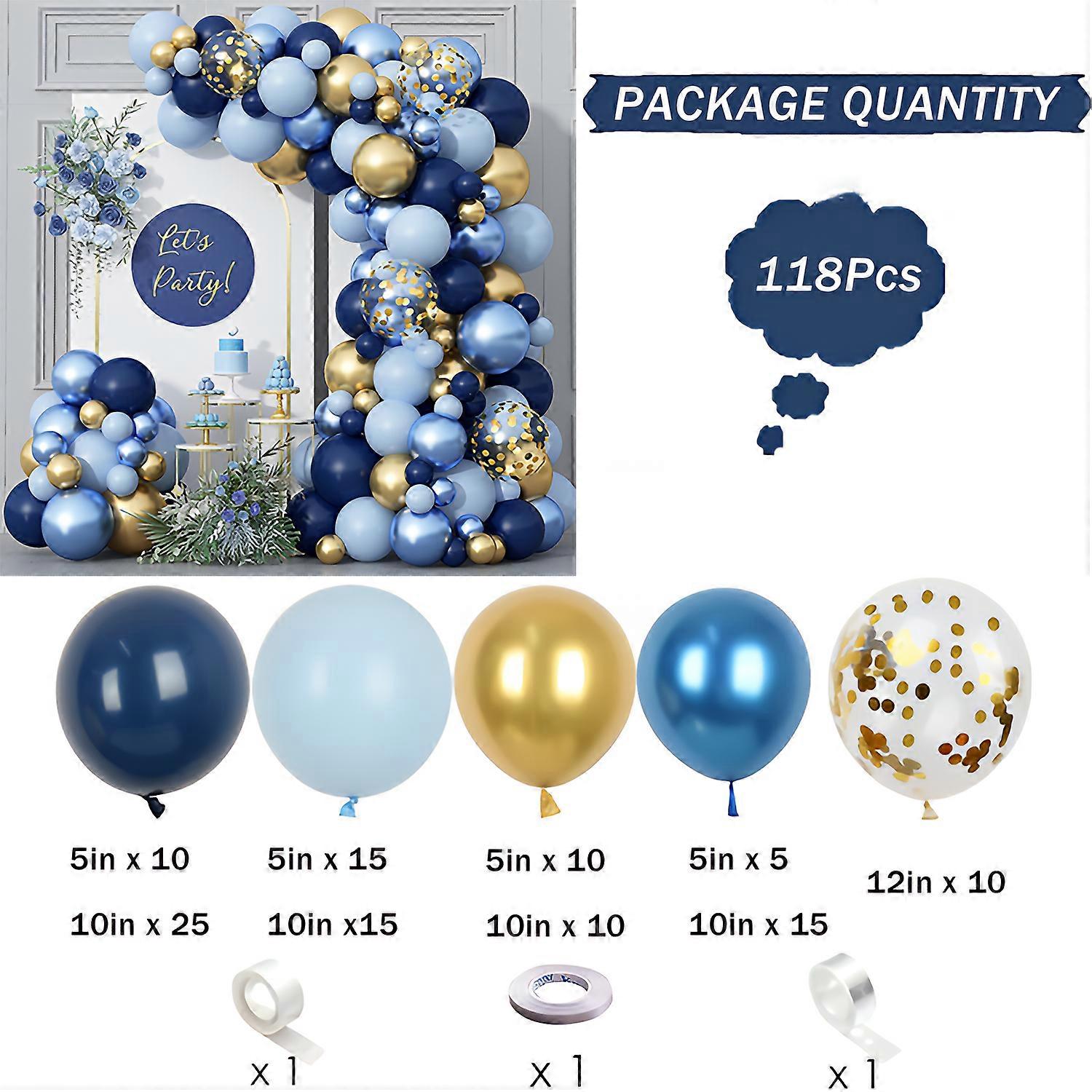 118Pcs Blue Balloon Garland Arch Kit with Golden Confetti Blue Metallic Balloon for Birthday Wedding Party Baby Shower Decor