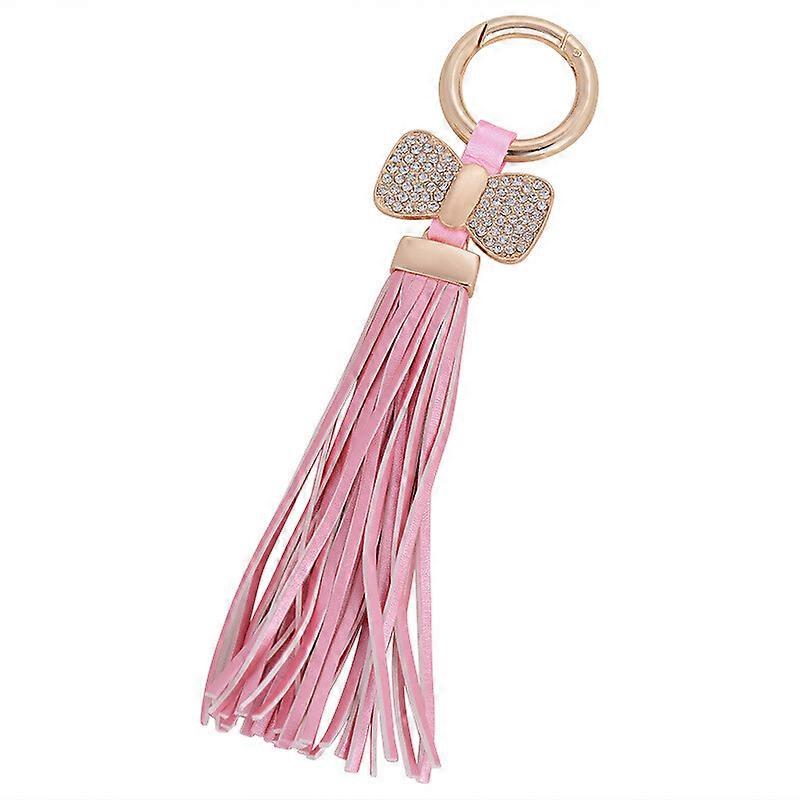 18.5cm New Bow Leather Tassel Keychains Girls Car Key Chain Female Key Ring Gift