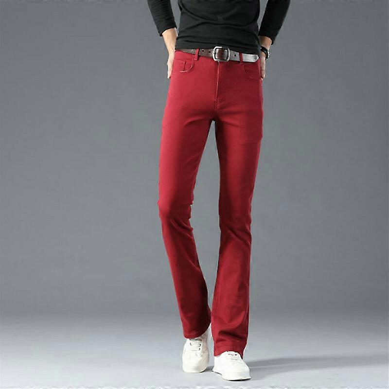 Men Bell Bottom Jeans 60s 70s Flared Denim Long Pants Stretch Trousers Slim Fit
