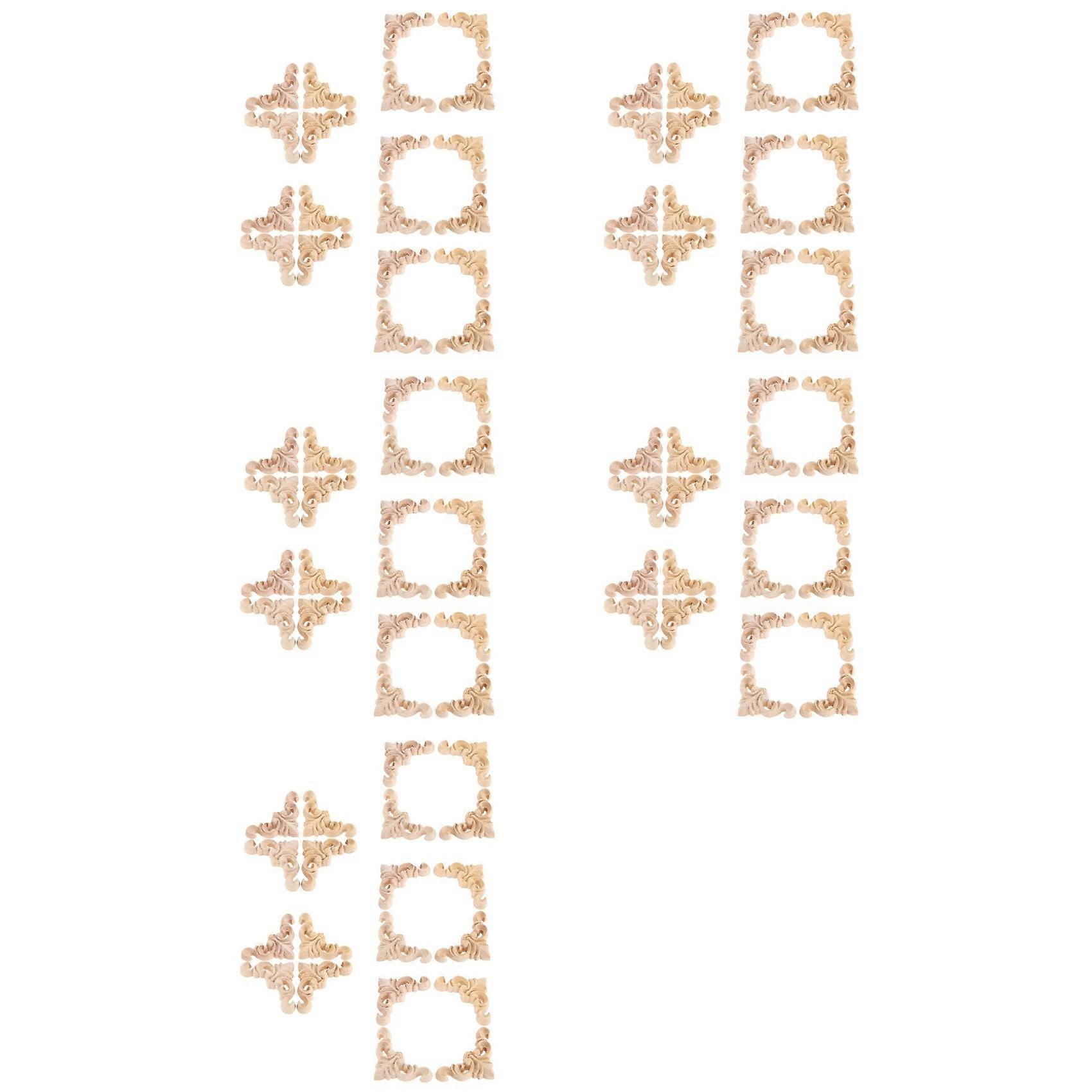 100Pcs Carved Unpainted European Wood Furniture Window Corner Wood Applique Onlay Wood Figurines Ornamental 4 X 4cm