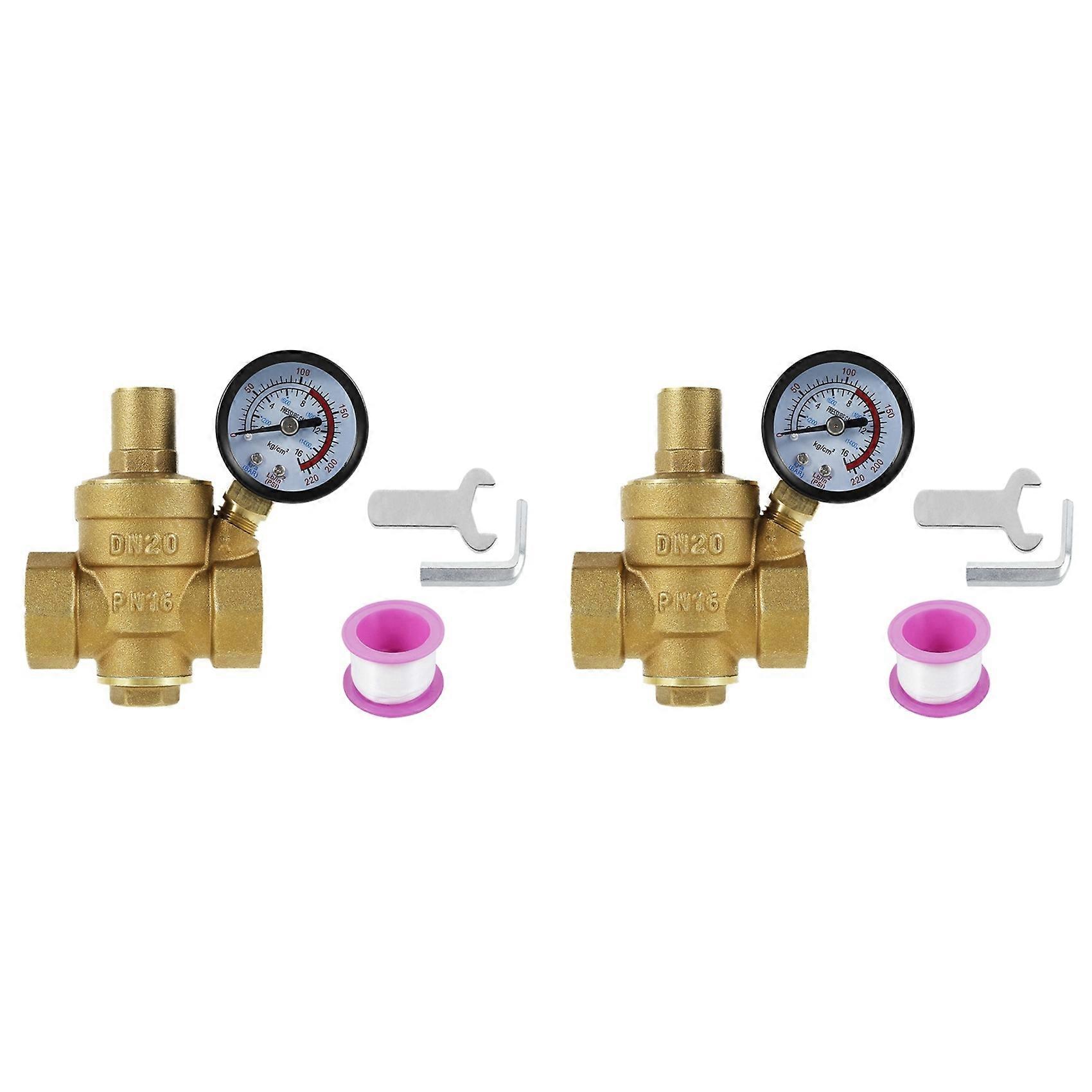 2 Set 3/4inch DN20 Brass Water Pressure Regulator Valve Water Pressure Reducer Regulator Adjustable Relief Valve Gauge