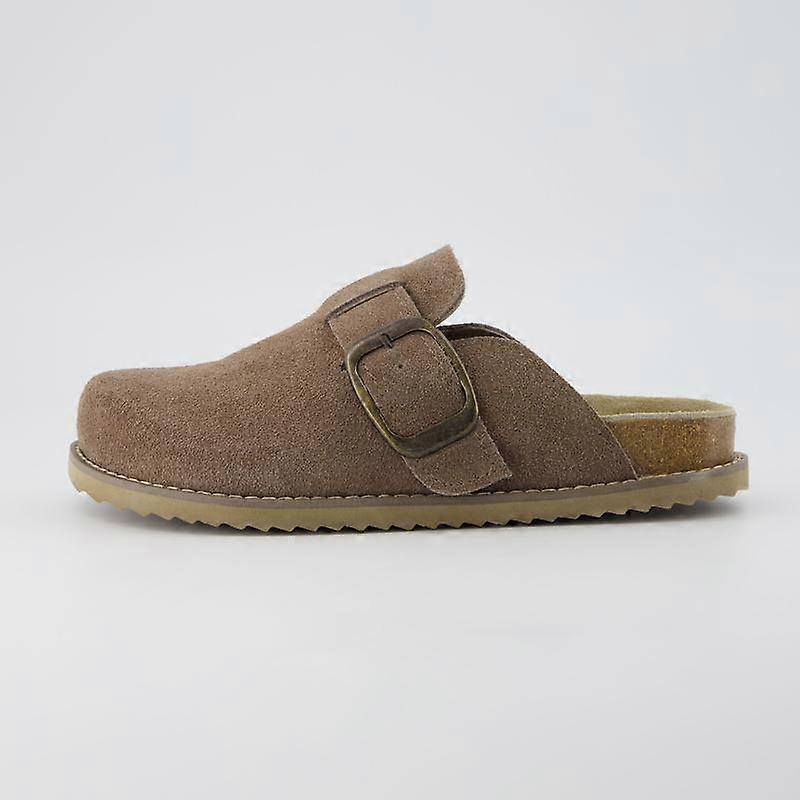 Cushionaire Women's Blain Suede Slip-On Clogs | Genuine Leather Casual Shoes for Women with Soft Memory Foam Cushioning & Oversized Buckle