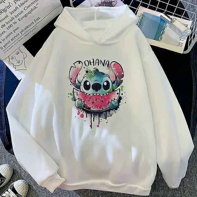 Boys Girls Disney Stitch Angel Cartoon Fun Print Fall and Winter Long Sleeve Top Kids Casual Comfortable Soft Hooded Sweatshirt