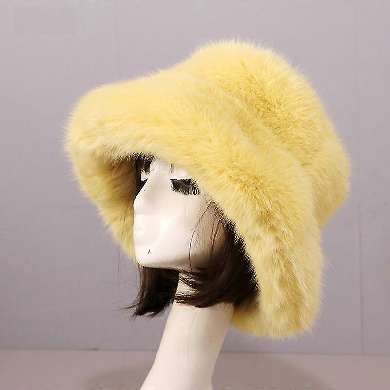Women's Fuzzy Bucket Hat Winter Fluffy Furry Plush Faux Fur Hats Fisherman Cap