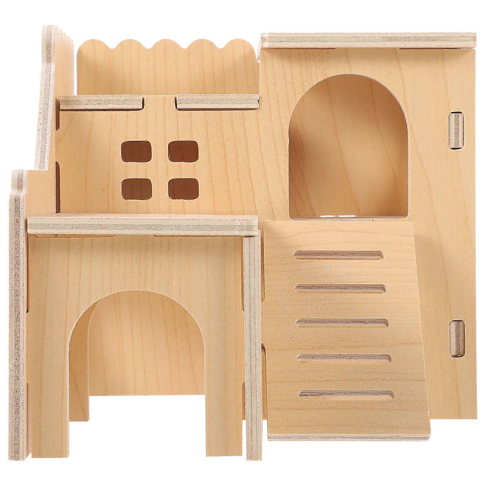 Double-Layer Hamster Room 5Pcs Chewing And Climbing Decor For Small Pet Owners Featuring Comfortable Light Yellow Design