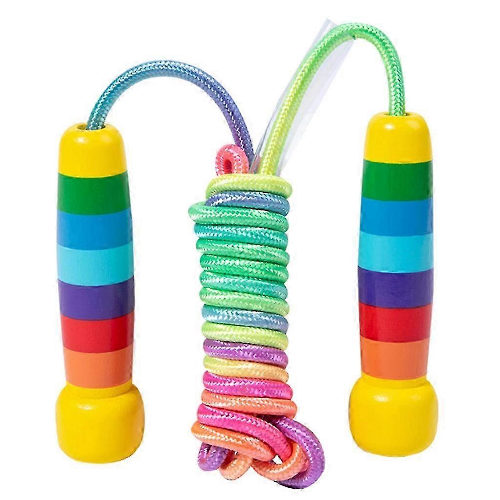 An Adjustable Woven Skipping Rope with a Wood Handle for Girls and Boys