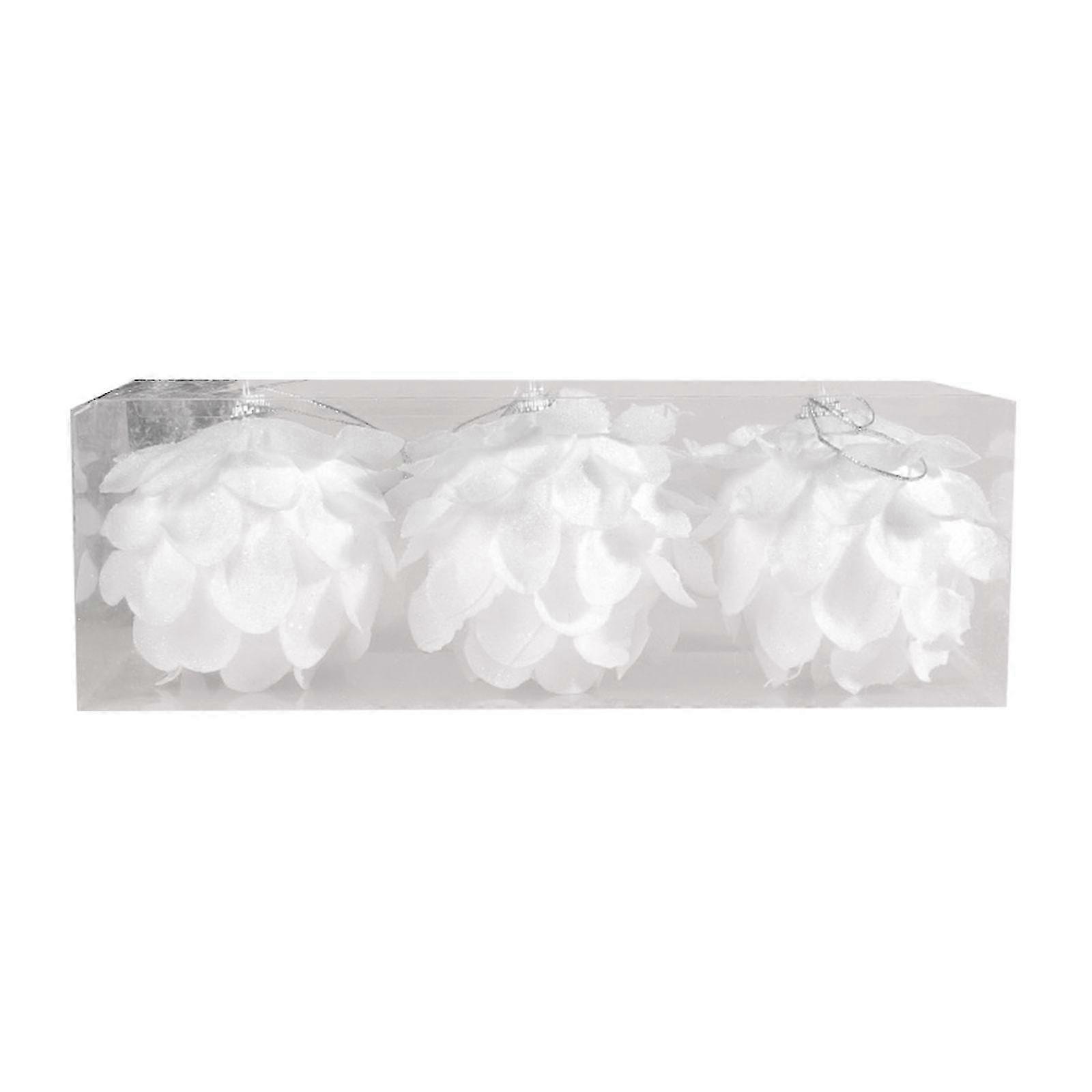 A Box of 3 White Foam Petal Christmas Ball Ornaments for Xmas Holiday, Wedding, and Home Decor