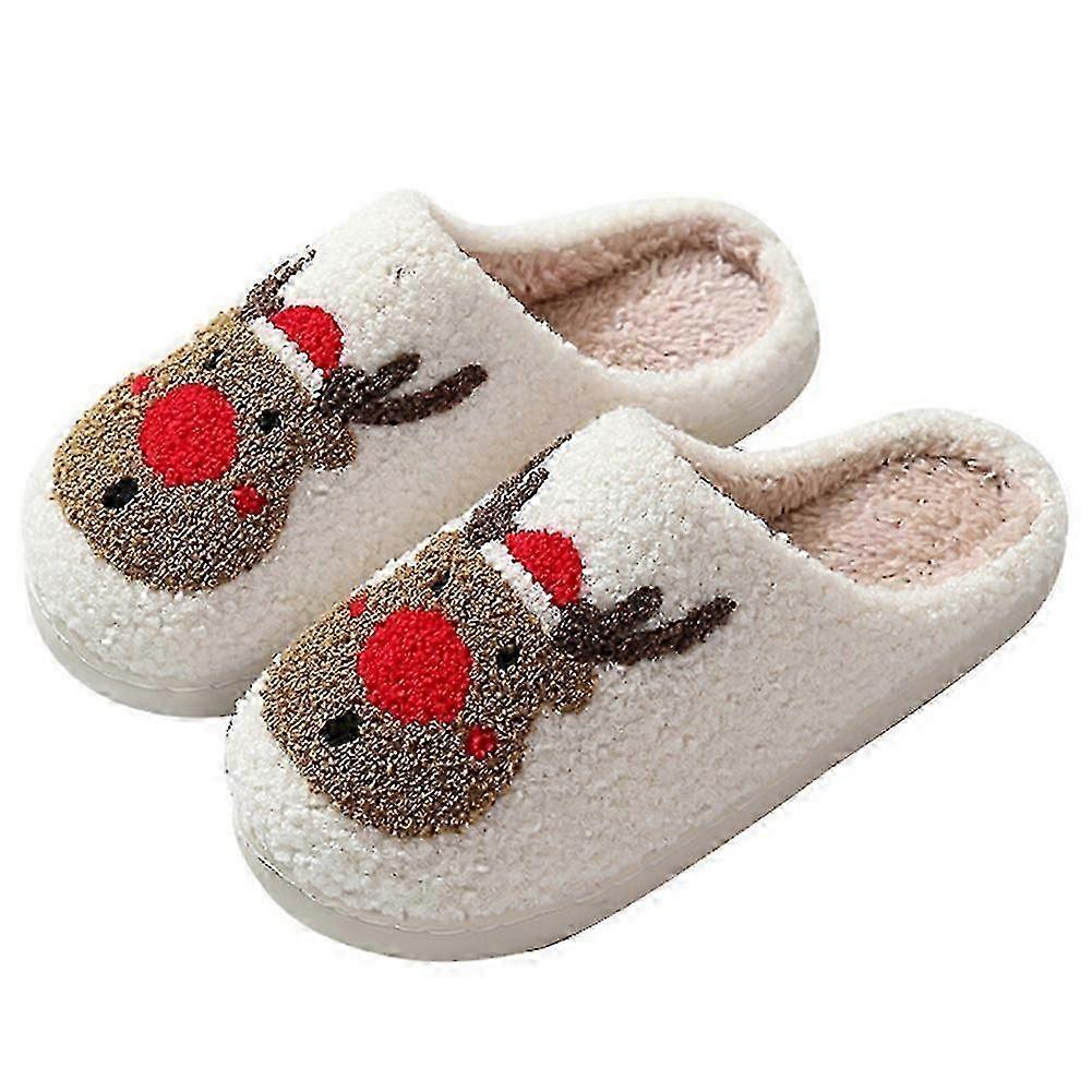 Christmas Deer Slip-On Comfy House Slippers for Women Plush Warm Slippers