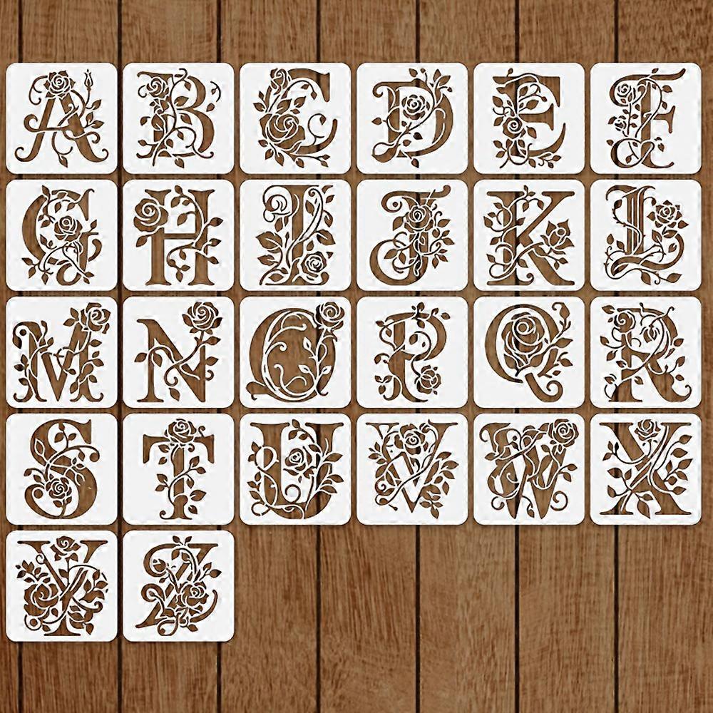Hollow Graffiti Template Eco-Friendly Floral Alphabet Stencils Rose Painting Stencils Washable Reusable Letter Templates For