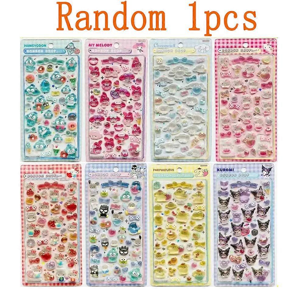 Cute Anime Hellokitty Kuromi Cinnamoroll 3D Sanrio Stickers Transparent Jelly Crystal Decorative Sticker Phone Case DIY Kids Toy