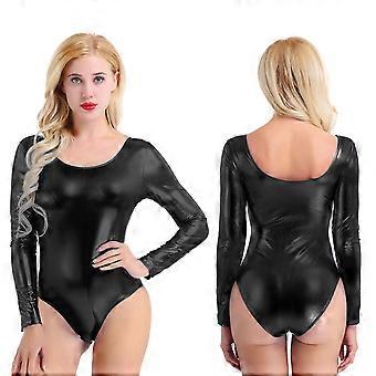 Woman Shiny Ballet Dance Bodysuit One-piece Thong Gymnastic Leotard Dancewear