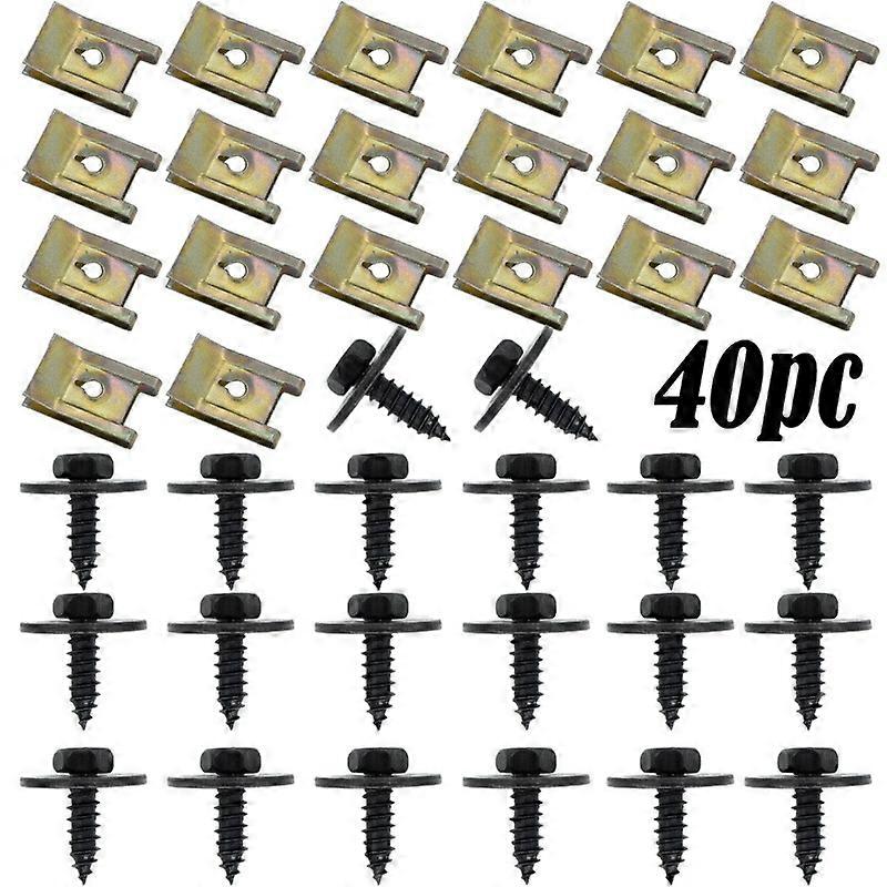 40 Pack Metal U Clips for Car Modification Screw Base Fasteners Fender Bumper Protection Trim Installation