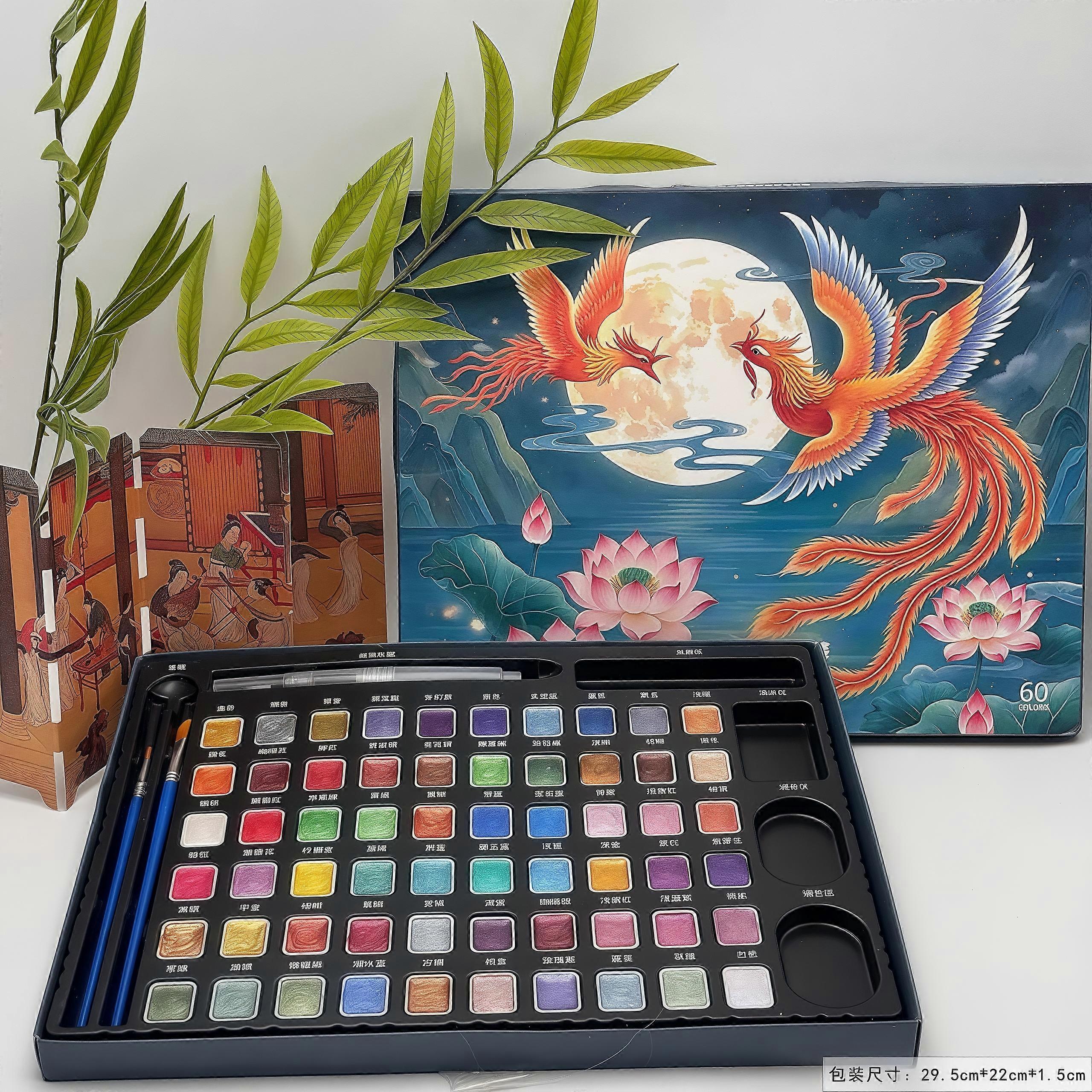 60/84/108Colors Shimmer Watercolor Paint Set Glitter Metallic Watercolour Painting Sets Solid Pearl Water Paints for Painting
