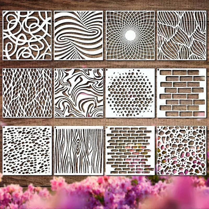 12Pcs Geometry Matrix Wavy DIY Stencils Washable Recomable Stencils Spray Paint Templates for Floor Doodling Home Decor Art Tool