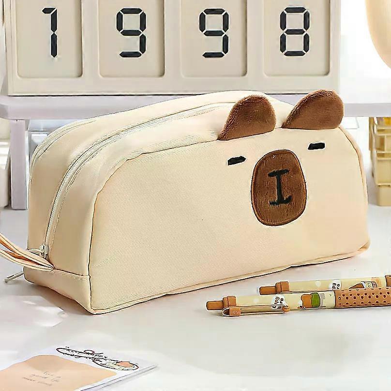 Plcomh Ears Capybara Stationery Bag Cute 3D Cat Pencil Case Large Capacity Creative Cartoon Pen Bag Simple Storage Bags 2025