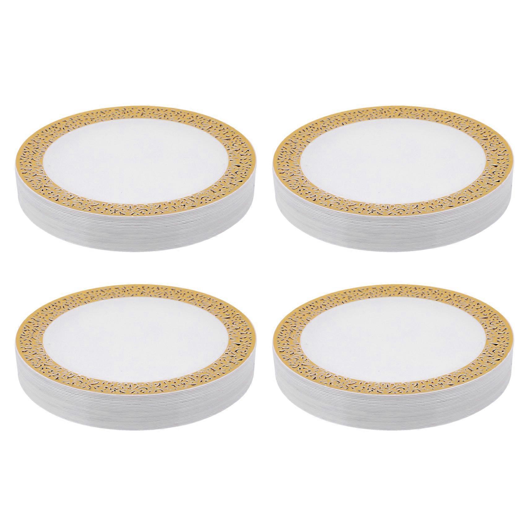 Gold Disposable Plastic Plates -Lace Design Plastic Plates,Gold Lace Plates Salad/Dessert Plates 100Pack-7.5Inch