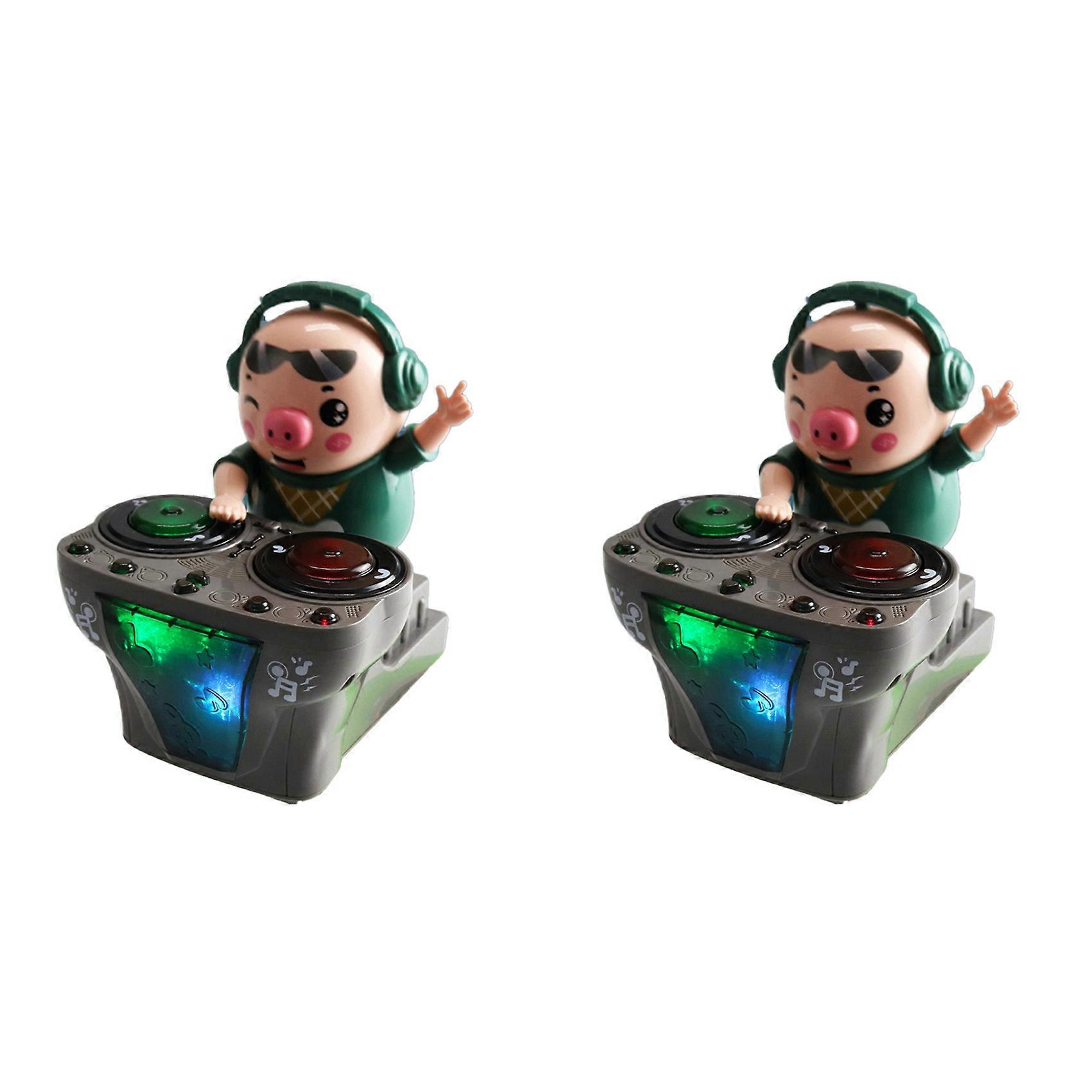 2X Children Toys DJ Rock Pig Electric Doll Toys Light Music Fun Electronic Party Doll Pig Waddles Dances Musical Toys