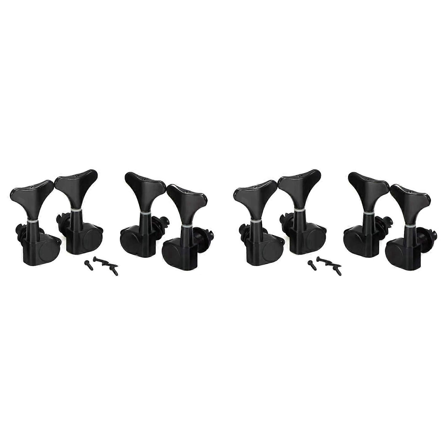 4+4 Sealed Bass Guitar Tuning Pegs Keys 4R4L Machine Head Tuners for Precision Bass and Jazz Bass, Black