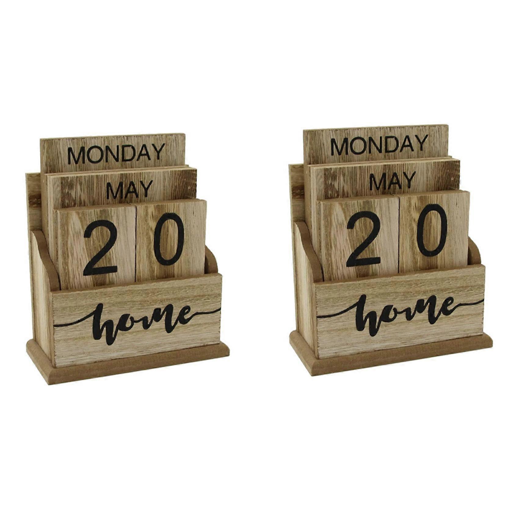 2X Wooden Flip Desk Blocks Calendar,Perpetual Plank/Table Calendar Display,for Home/Office Decoration,11.5X6.5X14.5CM,A