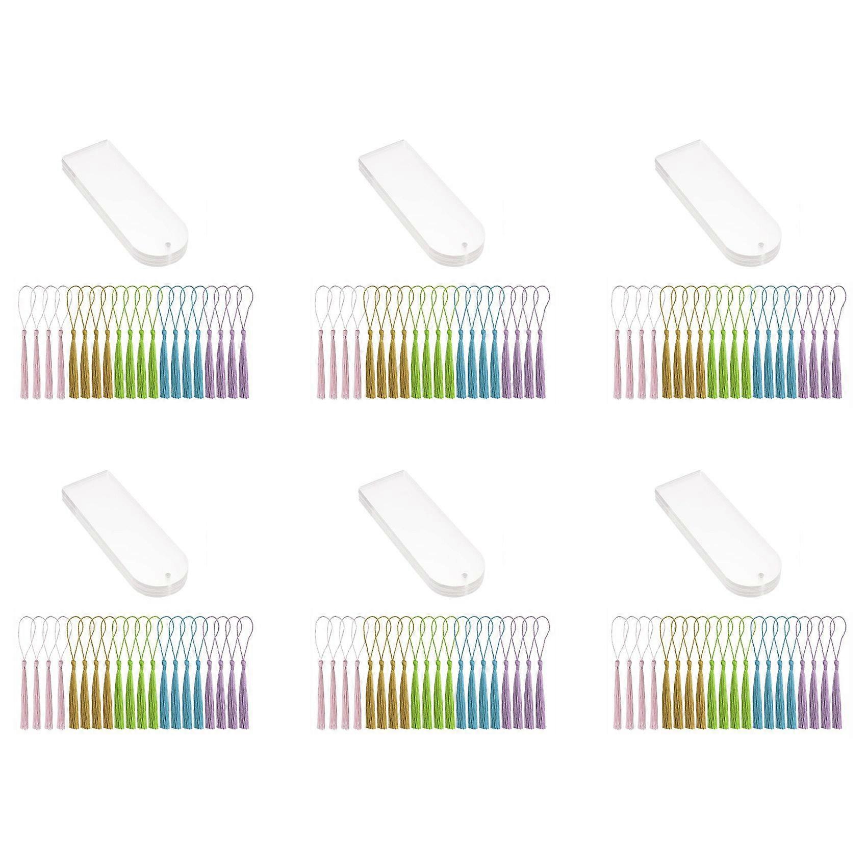 Blank Clear Acrylic Bookmarks 120Pcs Rectangle Craft Transparent Acrylic Book Markers with 120Pcs Small Bookmark Tassels