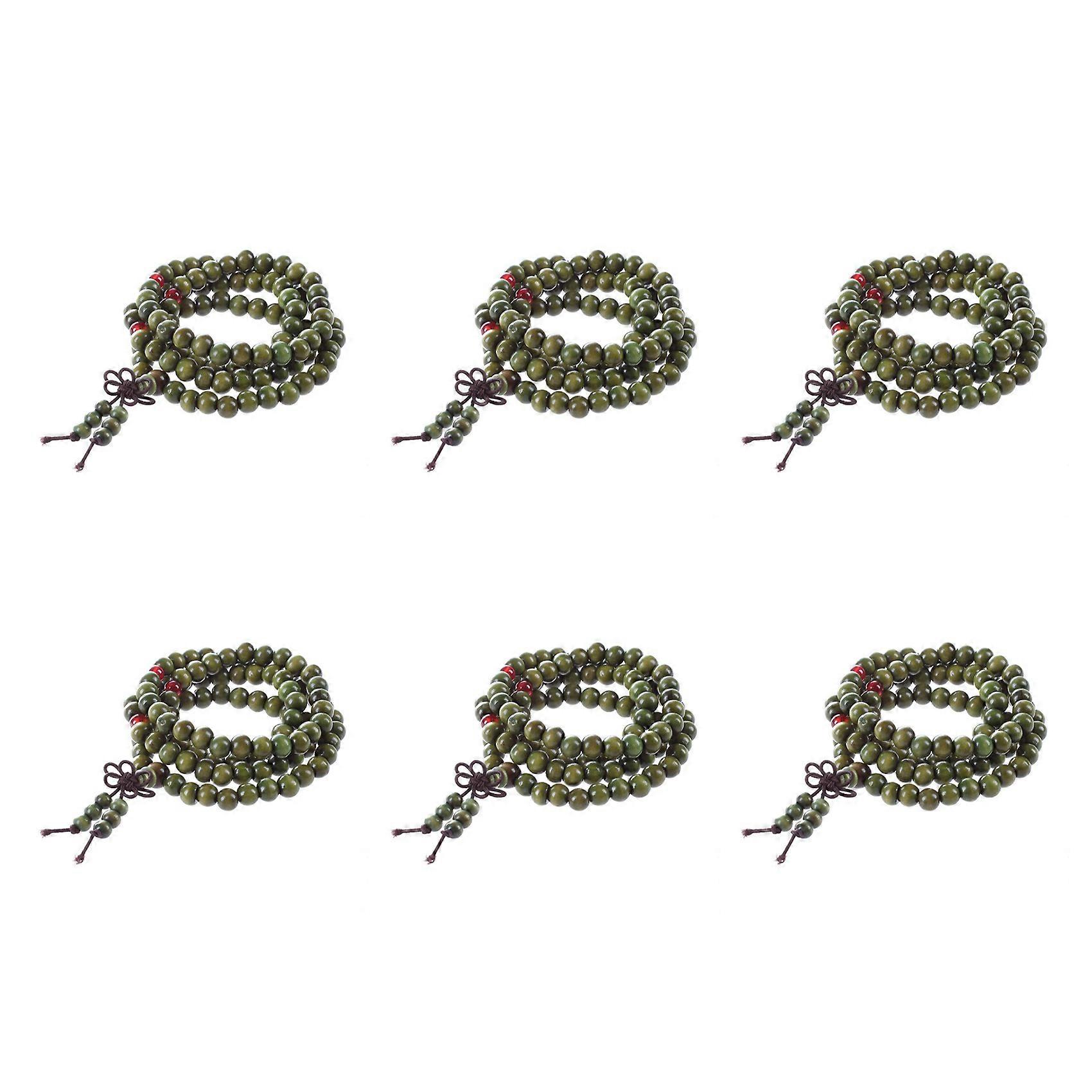 6X Olive Green Sandalwood Beads Buddha Buddhist Mala Stretch Necklace Rosary 29 inch