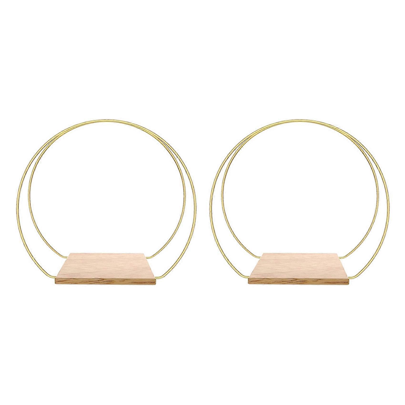 2 Sets Metal Floral Hoop Centerpiece with Stand 12 Inch Gold Floral Ring Wreath Hanging Candle Circle Centerpiece