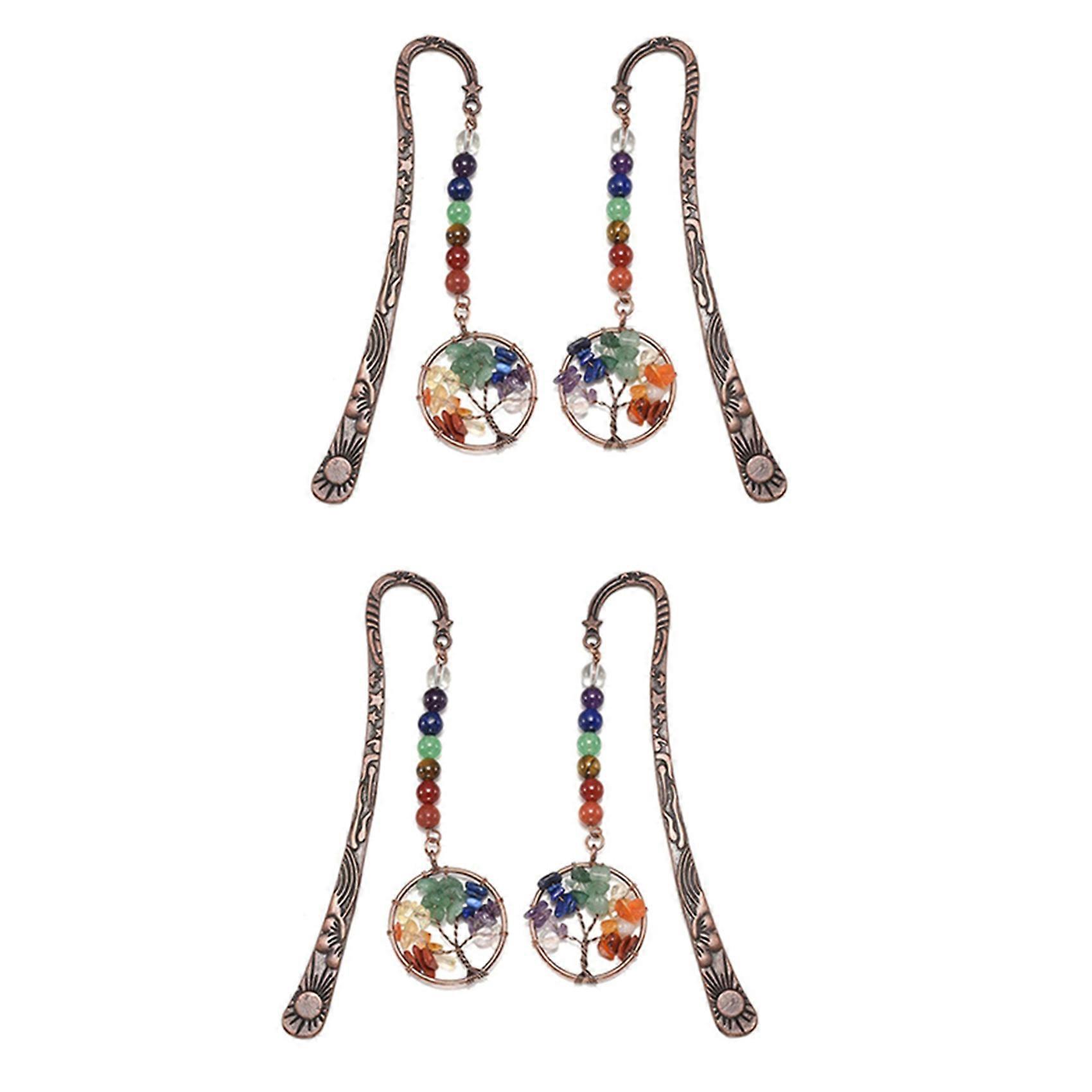 4X Chakra Crystal Bookmark Vintage Metal Tree Bookmarks for Women Student Teacher Graduation Christmas Gift