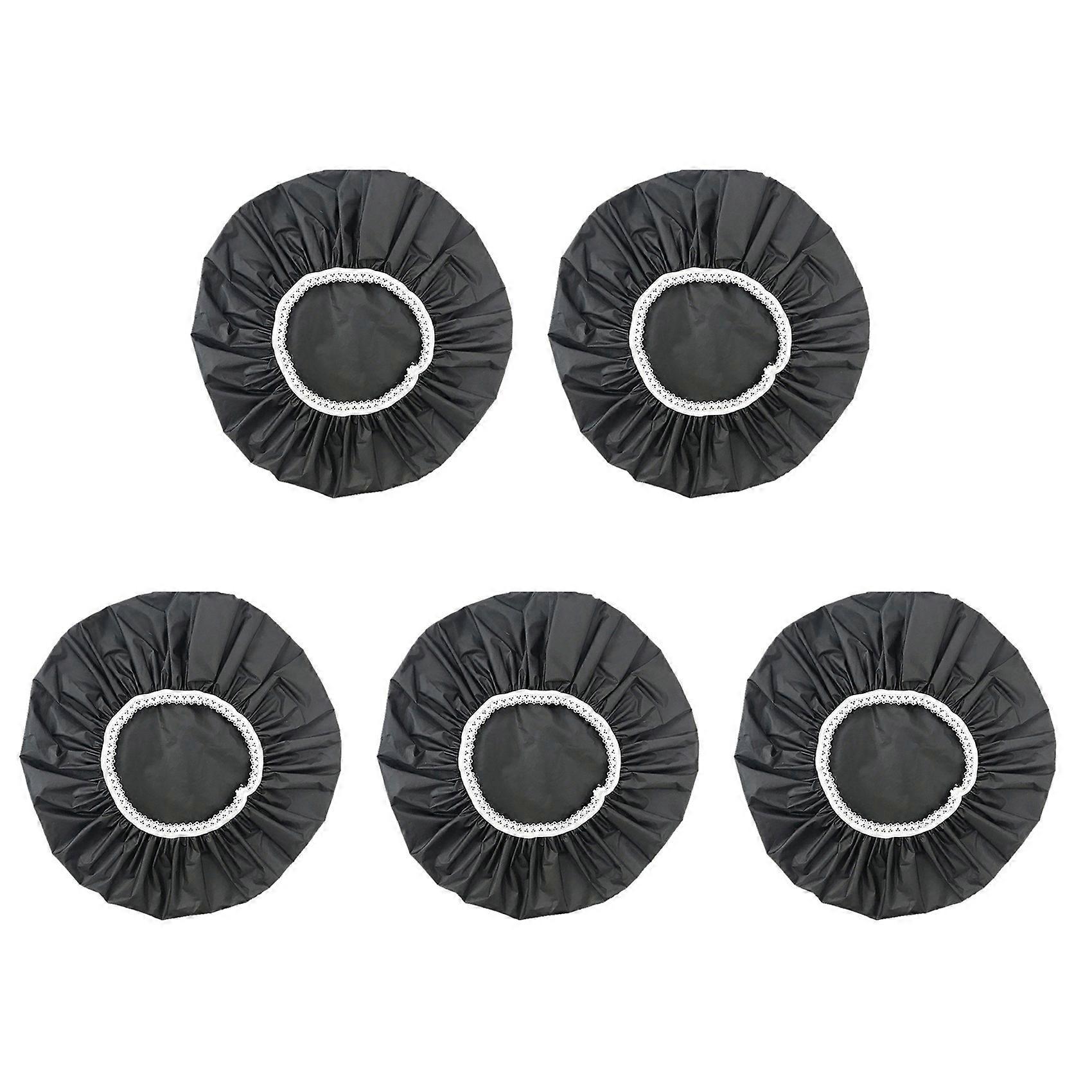 5Pcs Household Waterproof Shower Cap, Swimming Cap, Hotel Elastic Shower Cap Hair Set (Black)