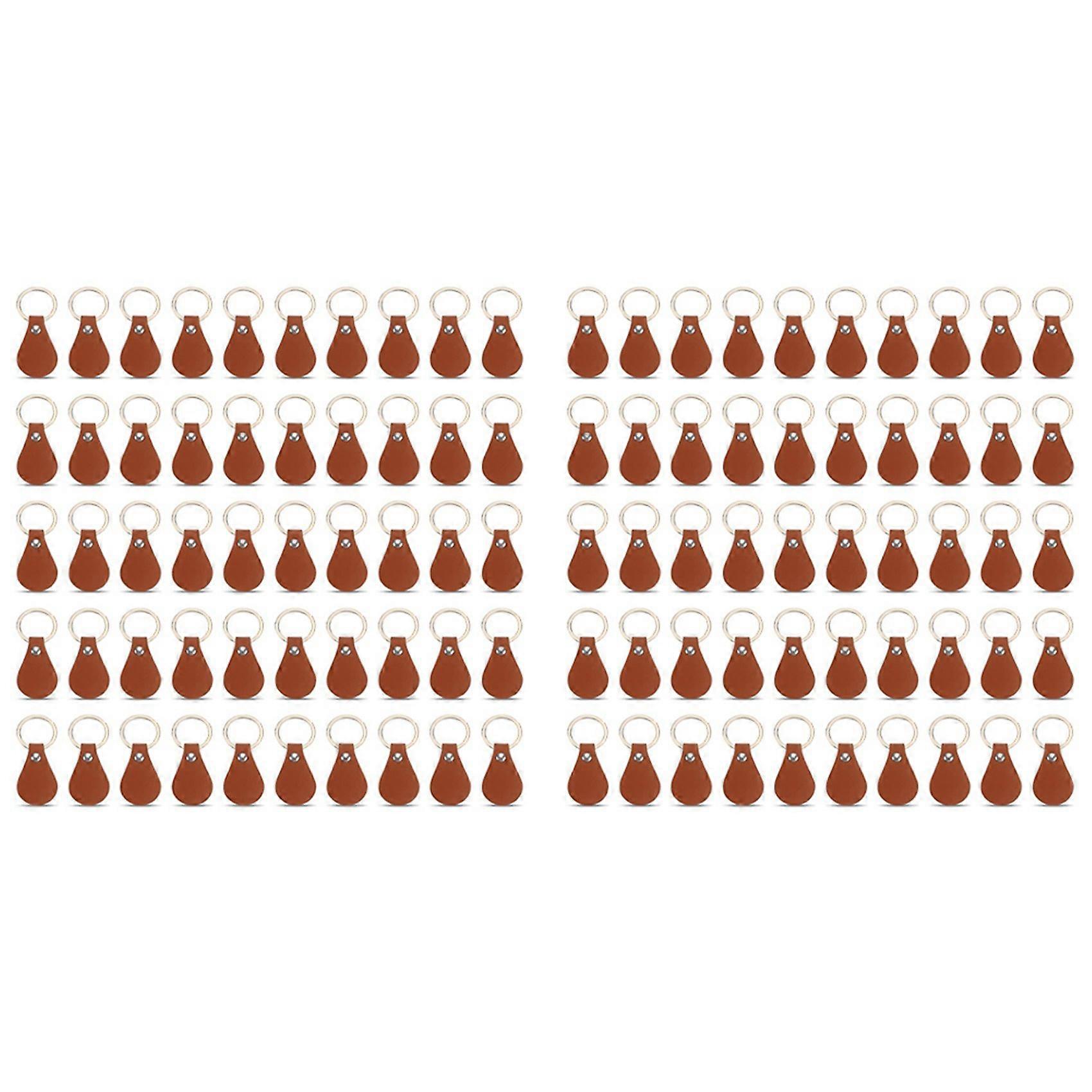 100Pcs DIY Leather Keychains Brown Blank Key Fob Rivets Keychain for Car Key Door Key Small Decoration Homemade Gift