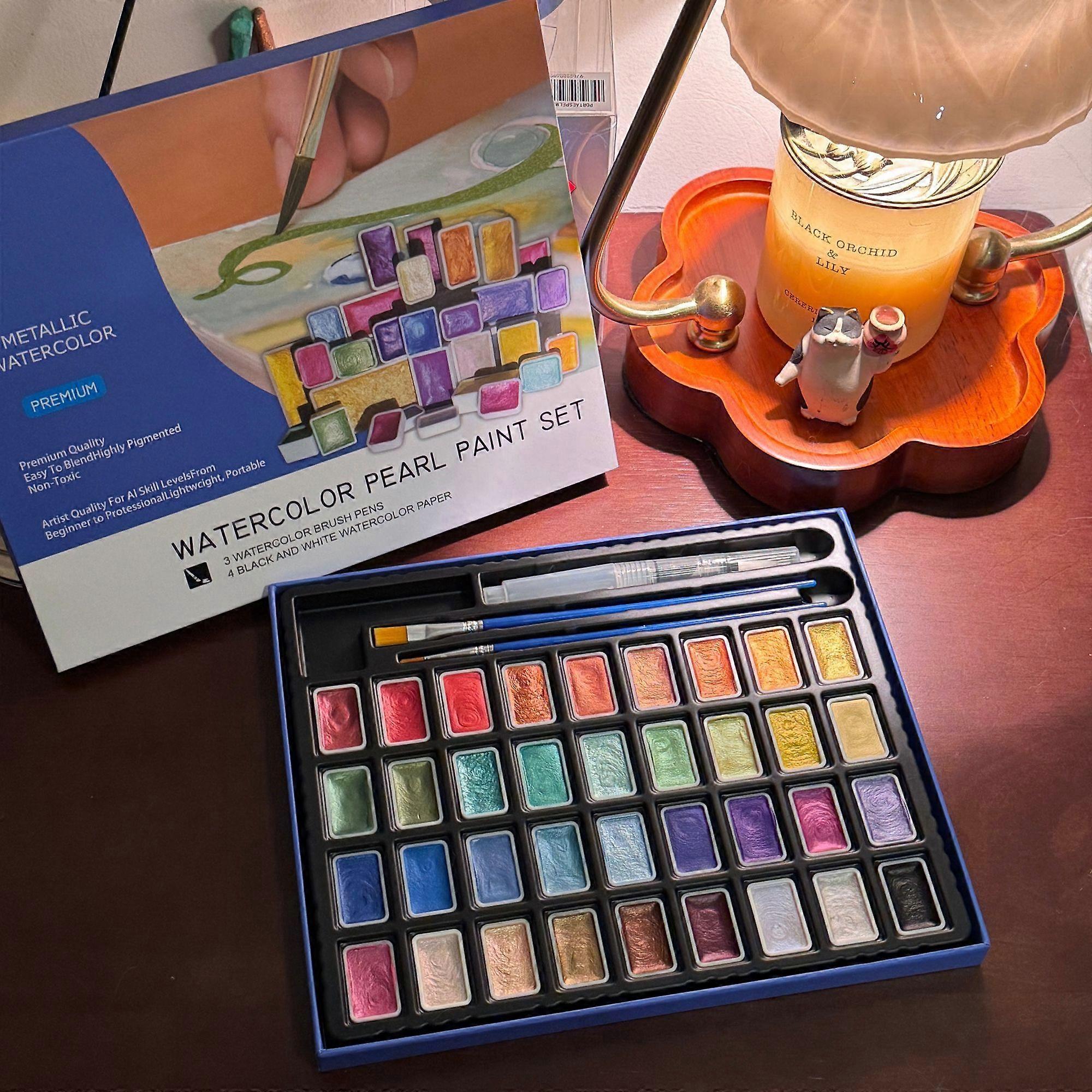 36 colors Metallic Watercolor Paint Set-Portable,2.6ml Large capacity, Watercolor painting, nail art paint, Perfect Holiday Gift
