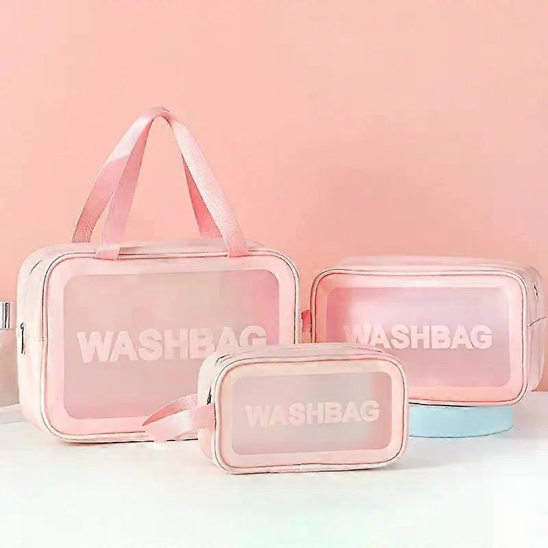 Pu Transparent Three Piece Makeup And Toiletries Bag, Large Capacity Pvc Semi Transparent Frosted Portable Storage Bag