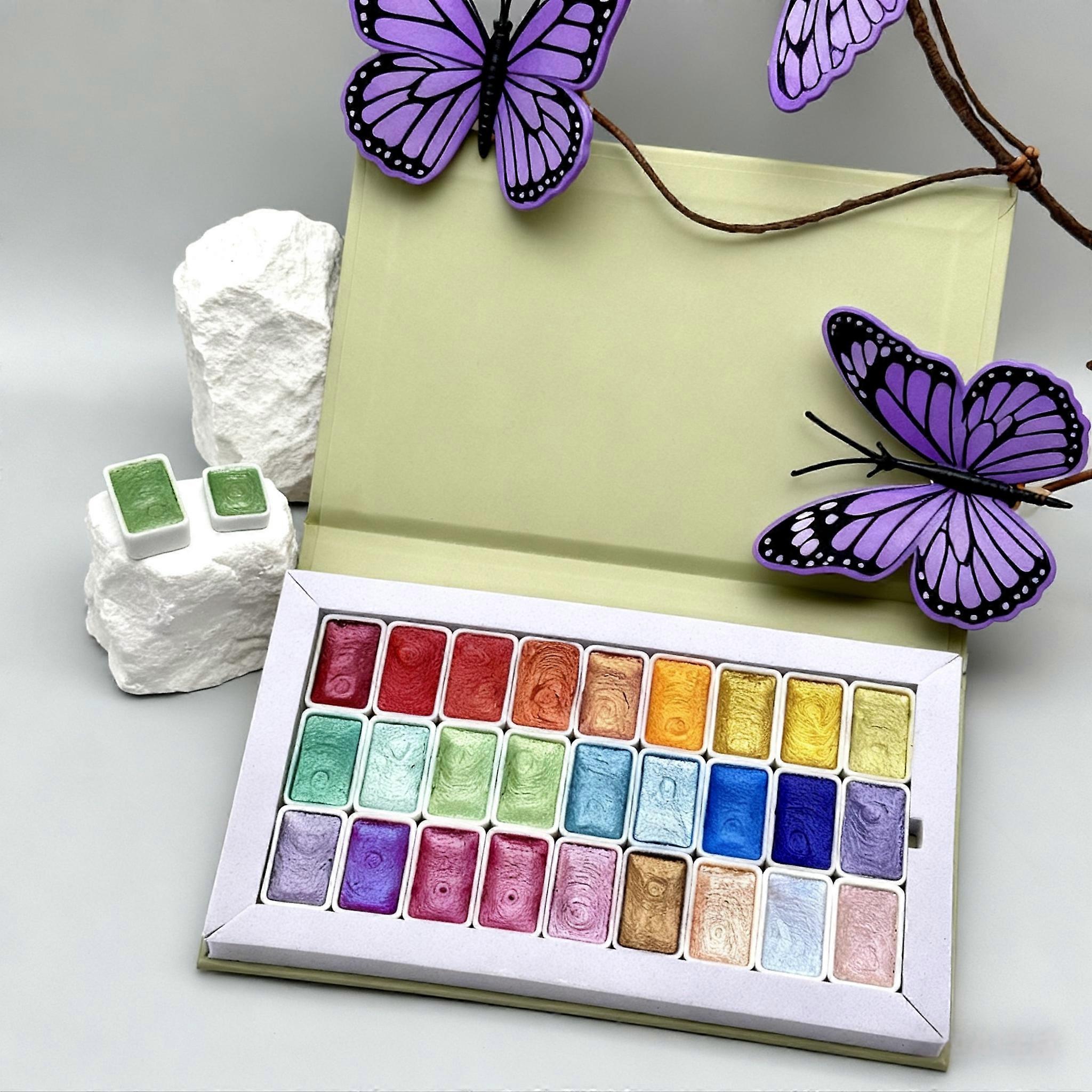 24 Color Solid Watercolor Pigment Glitter Watercolor 2.6ml Large Capacity Suitable for Professional Watercolor Painting Art