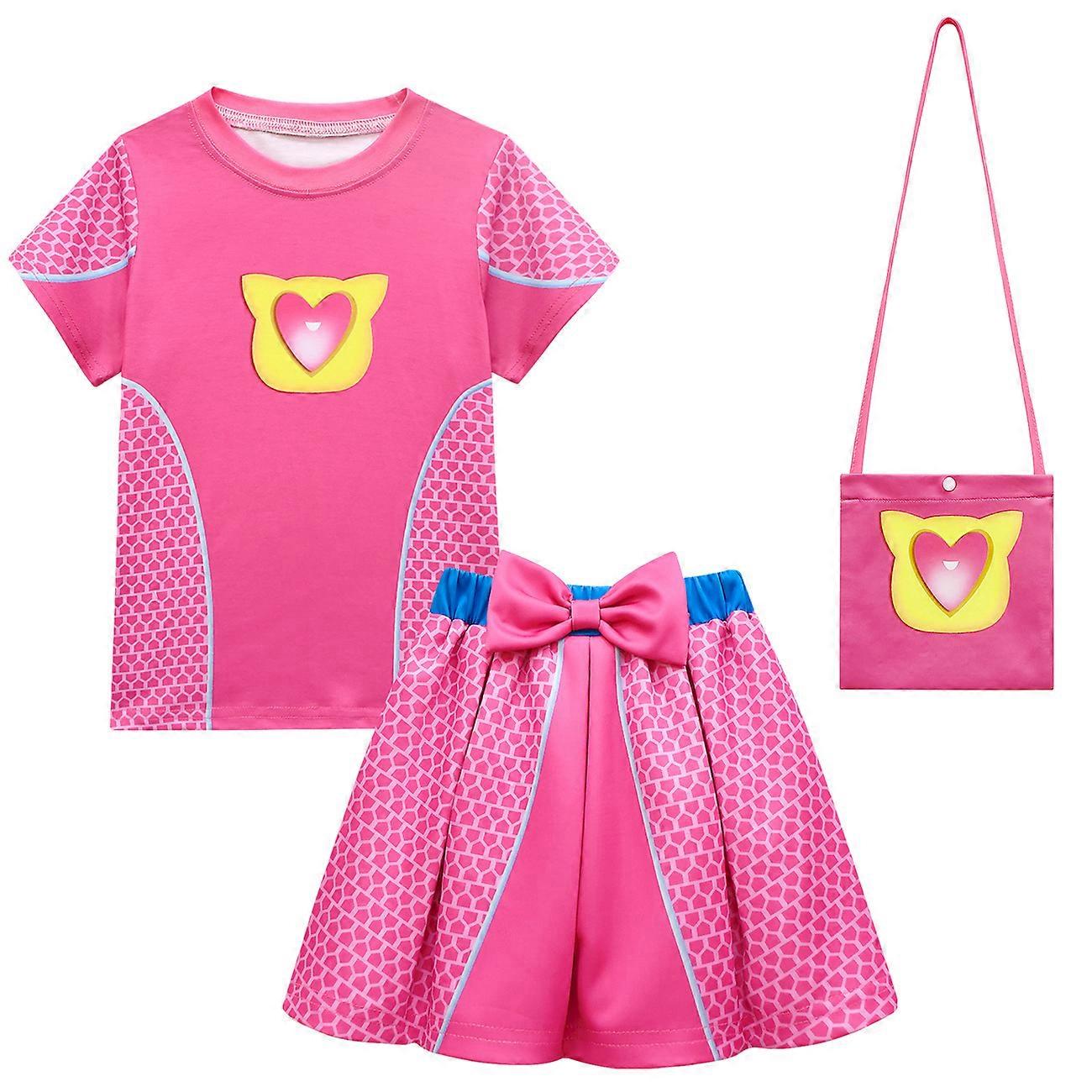 New Style Anime SuperKitties Creative Cartoon Cute Printed Girls' Short Sleeved Folding Skirt 3-Piece Set for Girl Birthday Gift