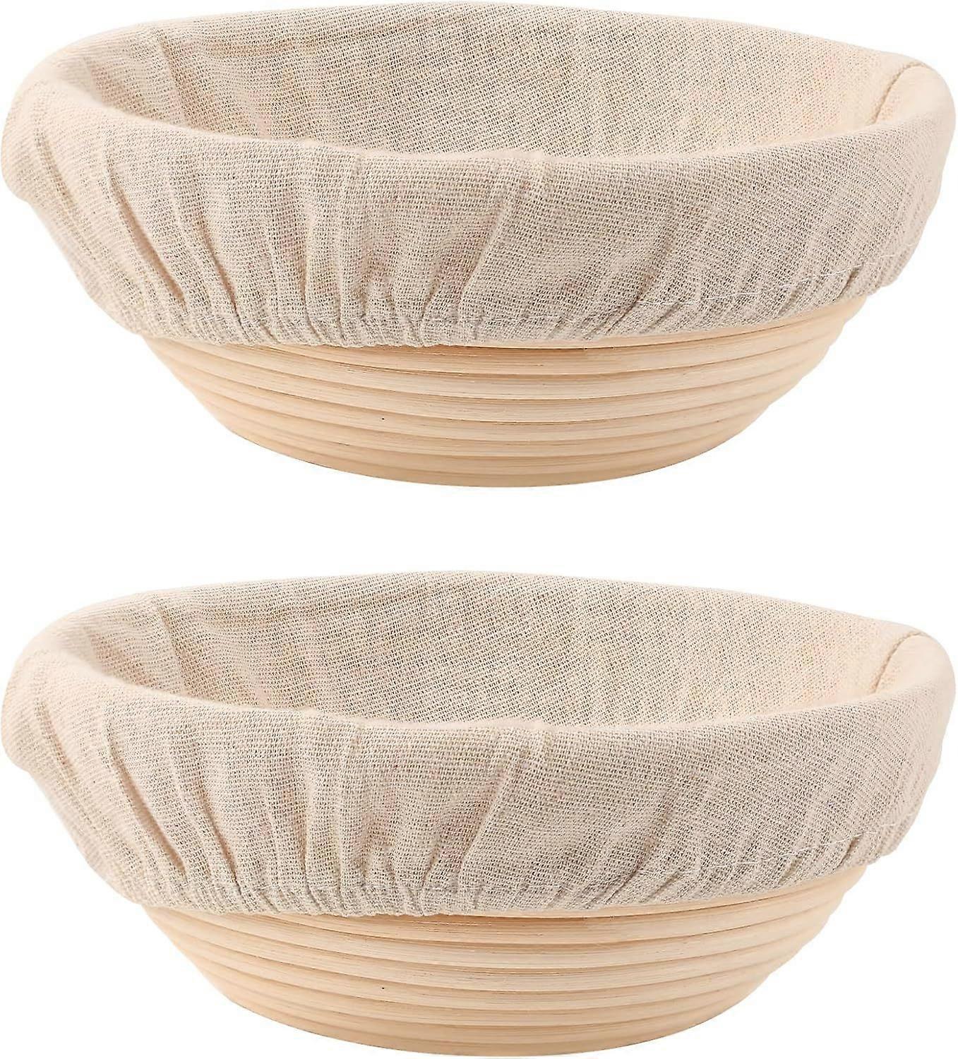 Perfect Home Furnishing Basket for Baking SourdoughSize: 8.5 inches (D) x 3.5 inches (H); Sold as a set of 2Made from natural rattan, meets EU food standards, and is ideal for making artisanal bread.Hand wash with warm water and keep dry after cleaning.The perfect gift for sourdough bakers: Our bread fermentation basket set can be used for a variety of bread recipes, including sourdough, French bread, and more. You can easily start making delicious bread at home.Package includes: A set of 2 8.5-inch round dough bowls and 2 bread fermentation basket liners