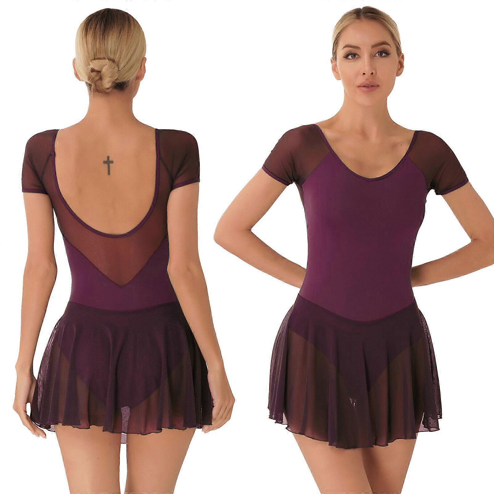 Womens Short Sleeve Ballet Dance Dress Gymnastics Tutu Skirted Ballerina Leotard
