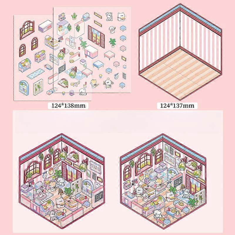 Cartoon Miniature Scene 3d Landscaping Stickers Diy Cabin Scene Stacking And Pasting Hand Account Cute Gift For New