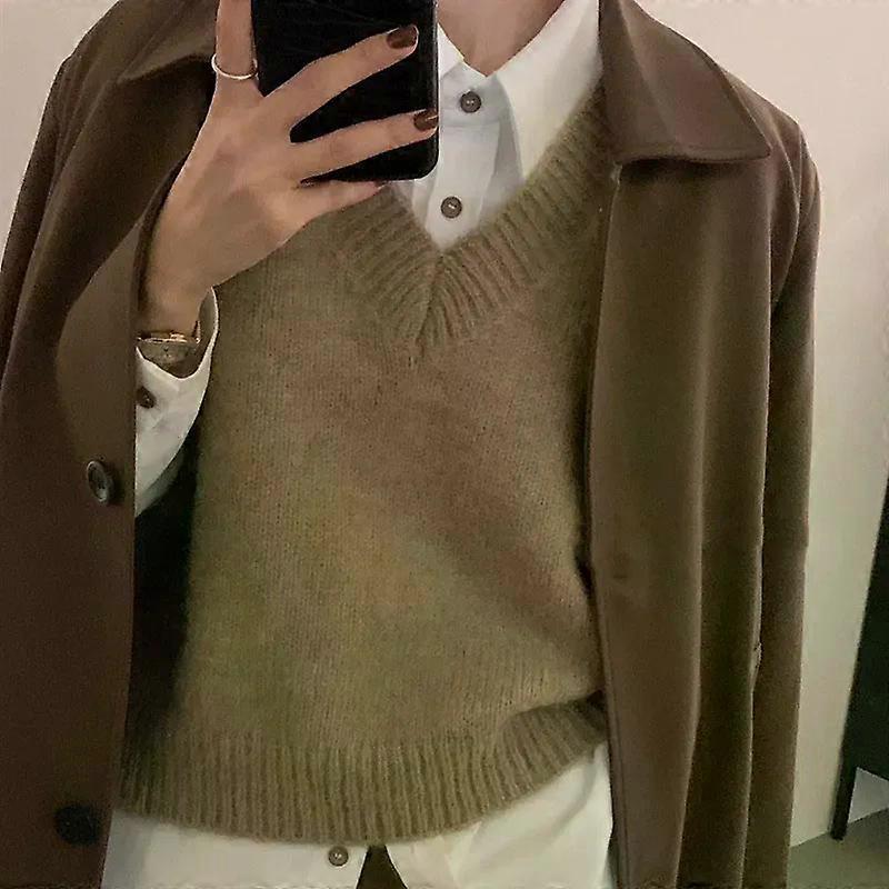 Autumn and winter warm and comfortable V-neck gray knitted vest women simple and exquisite black fashion sleeveless vest