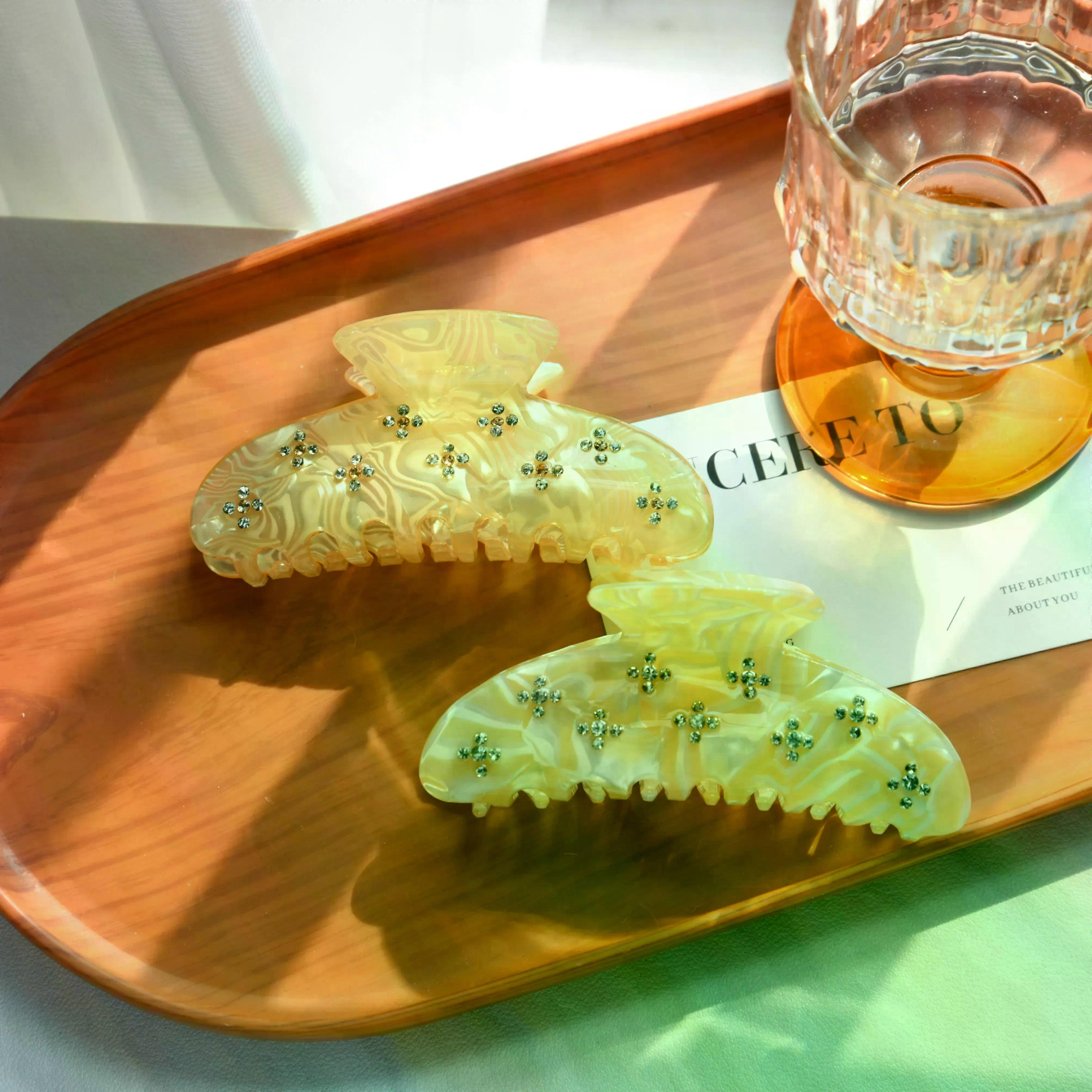 NEW Elegant Rhinestone Style Hair Claw Yellow Crystal Princess Dream Acetate Hair Claw Clips Hair Accessories for Women Girls