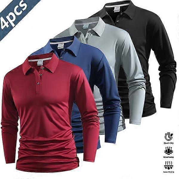 4 Piece Set Casual Men's Short Sleeve Polo Shirt Quick Dry Golf Tennis Shirt Comfortable Equestrian Wear Stylish Athletic Apparel Color Bloc